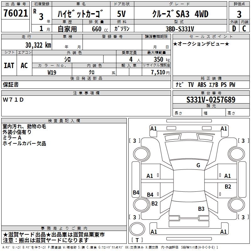 DAIHATSU HIJET CARGO CRUISE SA3 4WD - лот 76021