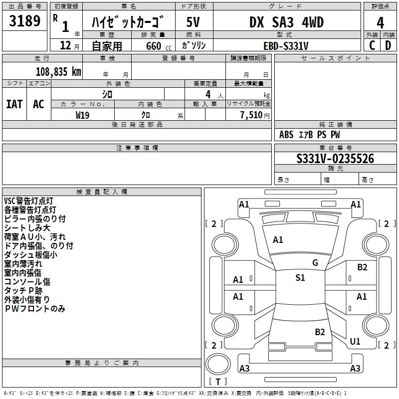 DAIHATSU HIJET CARGO DX SA3 4WD - лот 3189