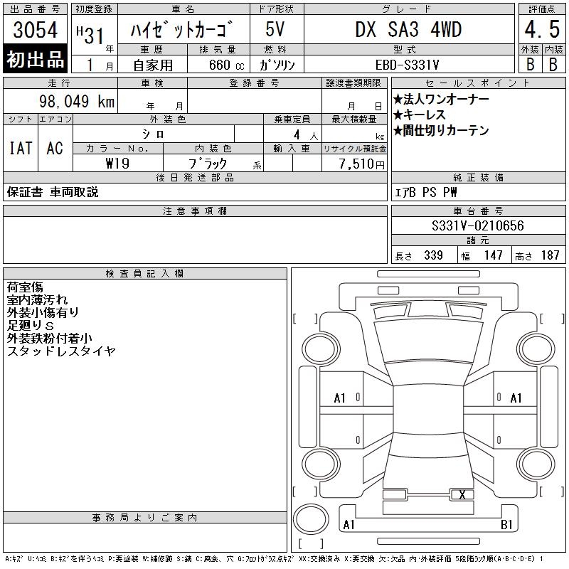 DAIHATSU HIJET CARGO DX SA3 4WD - лот 3054