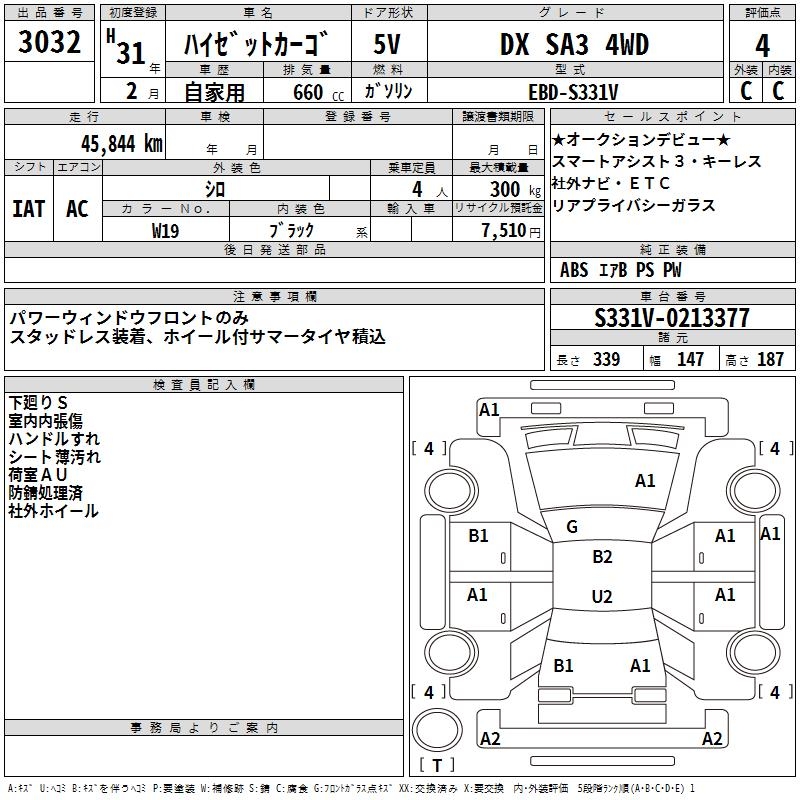 DAIHATSU HIJET CARGO DX SA3 4WD - лот 3032
