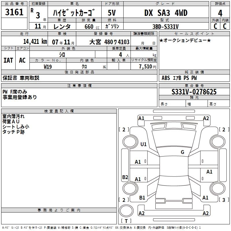 DAIHATSU HIJET CARGO DX SA3 4WD - лот 3161
