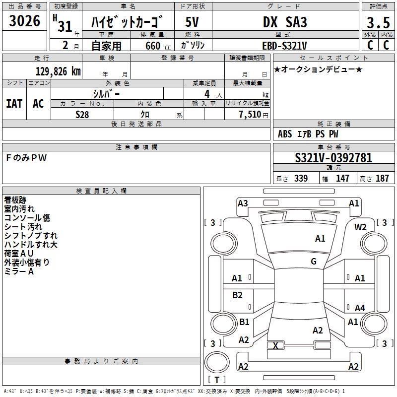 DAIHATSU HIJET CARGO DX SA3 - лот 3026