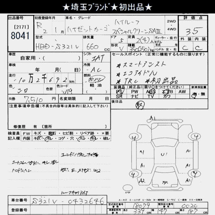 DAIHATSU HIJET CARGO SPECIAL CLEAN SA III HIGH ROOF - лот 8041
