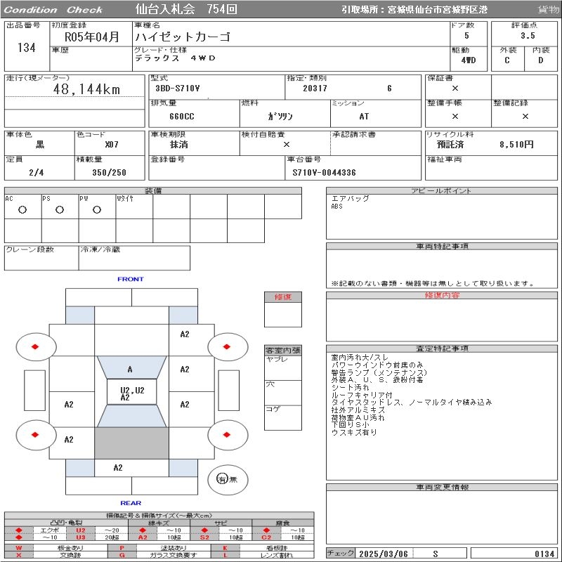 DAIHATSU HIJET CARGO DELUXE 4WD - лот 134