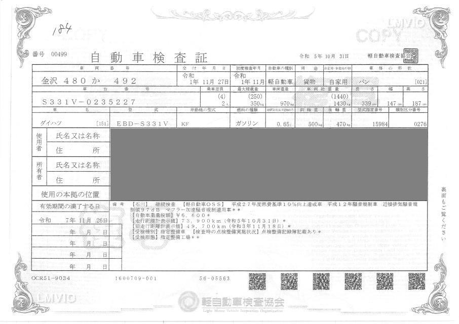 DAIHATSU HIJET CARGO 4WD SPECIAL ( HIGH ROOF ) - лот 184