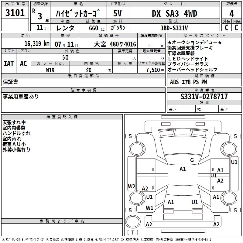 DAIHATSU HIJET CARGO DX SA3 4WD - лот 3101