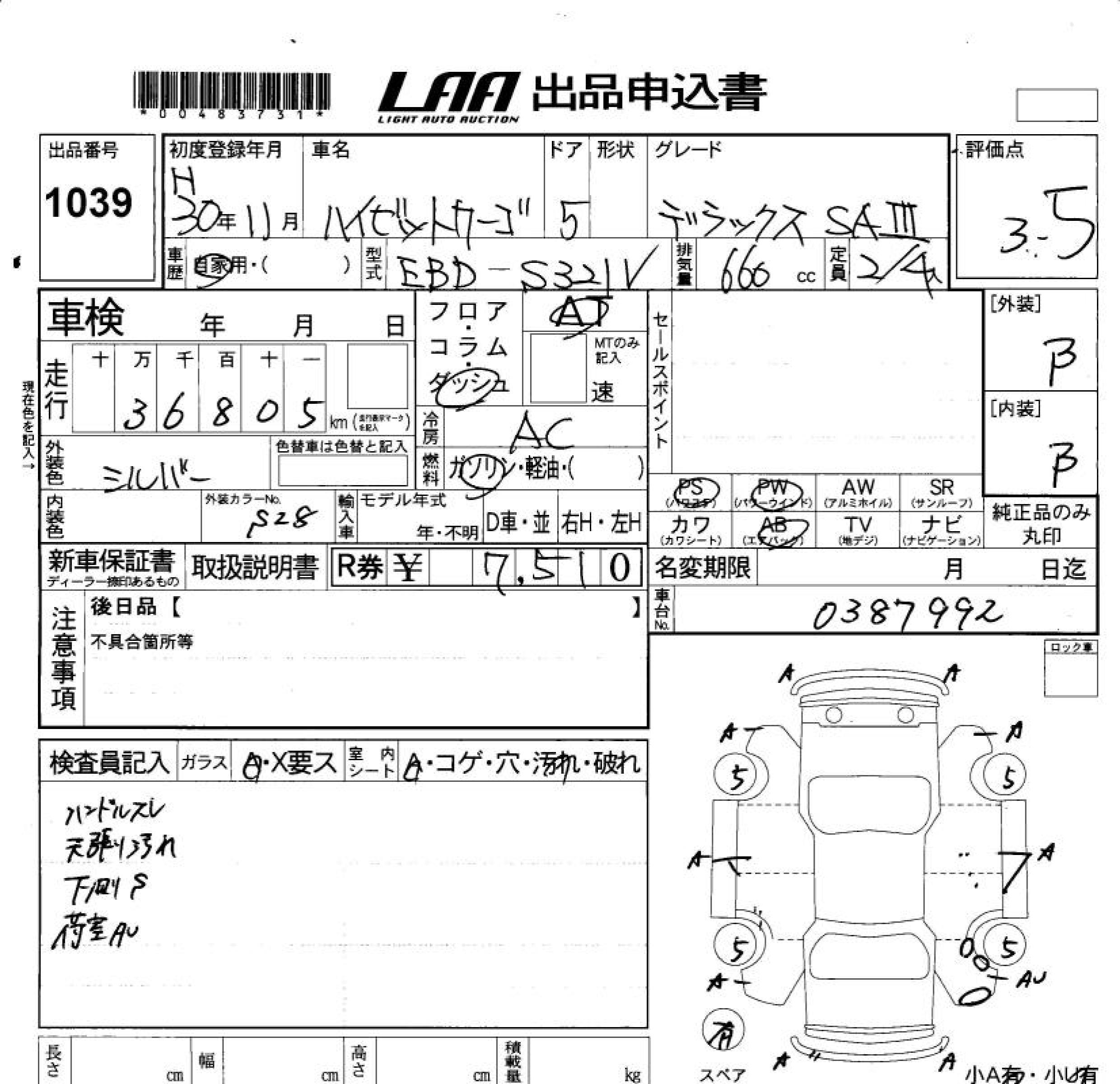 DAIHATSU HIJET CARGO DELUXE SA. - лот 1039
