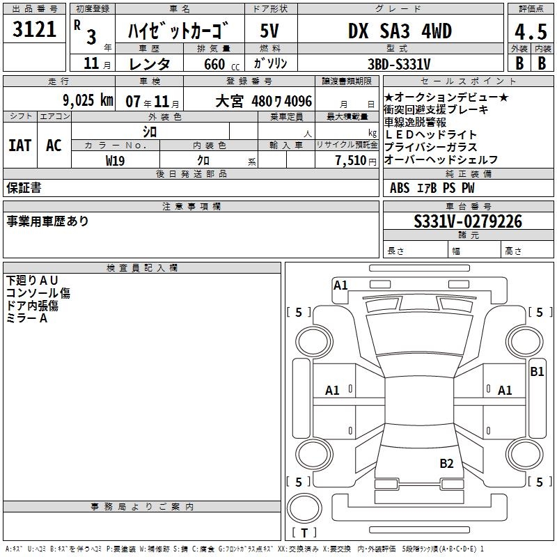 DAIHATSU HIJET CARGO DX SA3 4WD - лот 3121