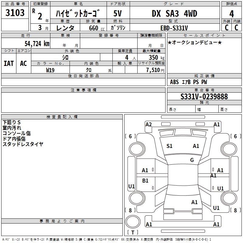 DAIHATSU HIJET CARGO DX SA3 4WD - лот 3103