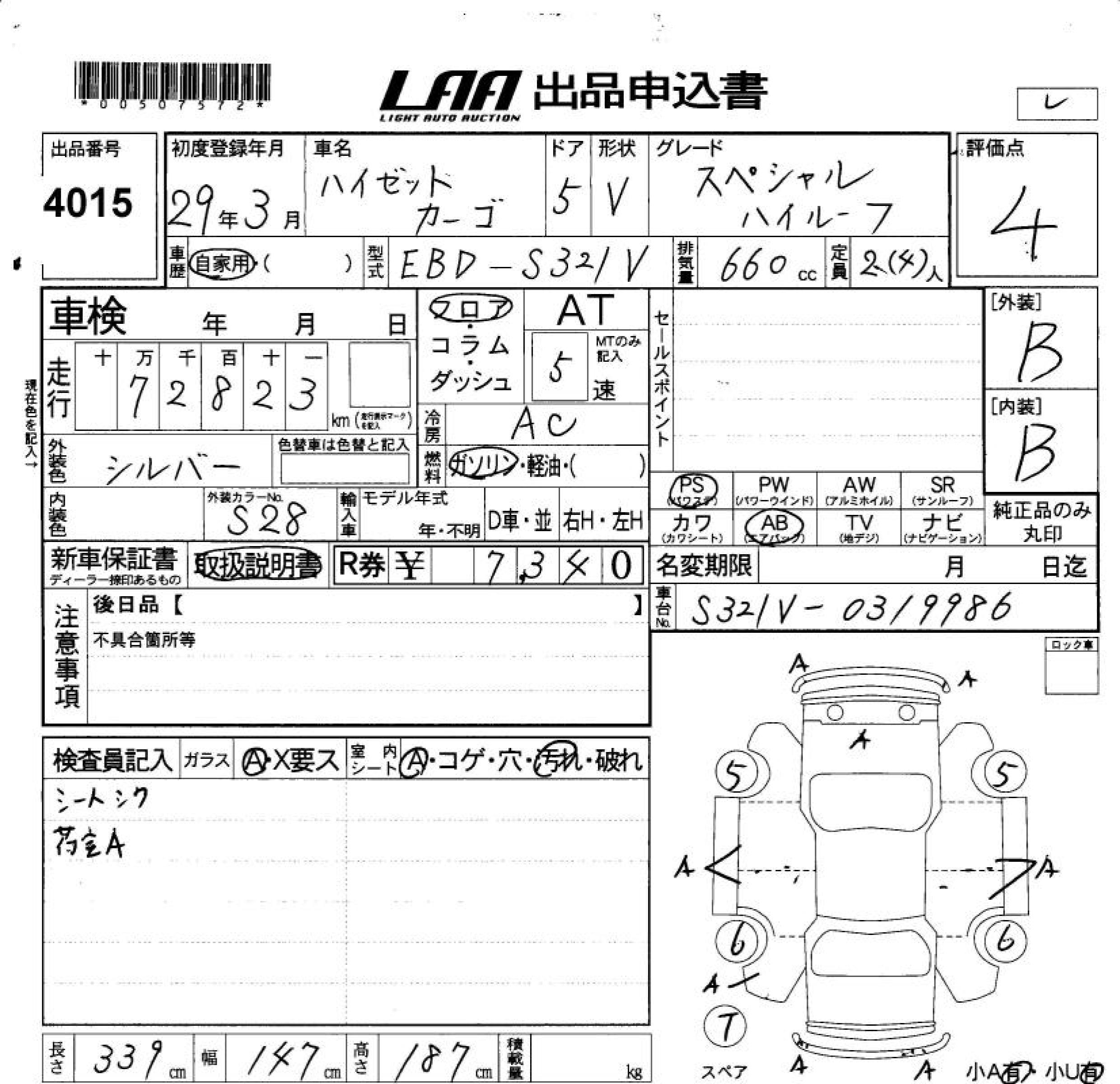 DAIHATSU HIJET CARGO SPECIAL HIGH ROOF - лот 4015
