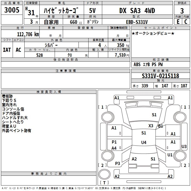 DAIHATSU HIJET CARGO DX SA3 4WD - лот 3005