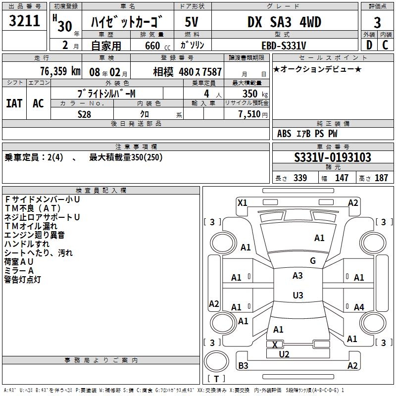 DAIHATSU HIJET CARGO DX SA3 4WD - лот 3211