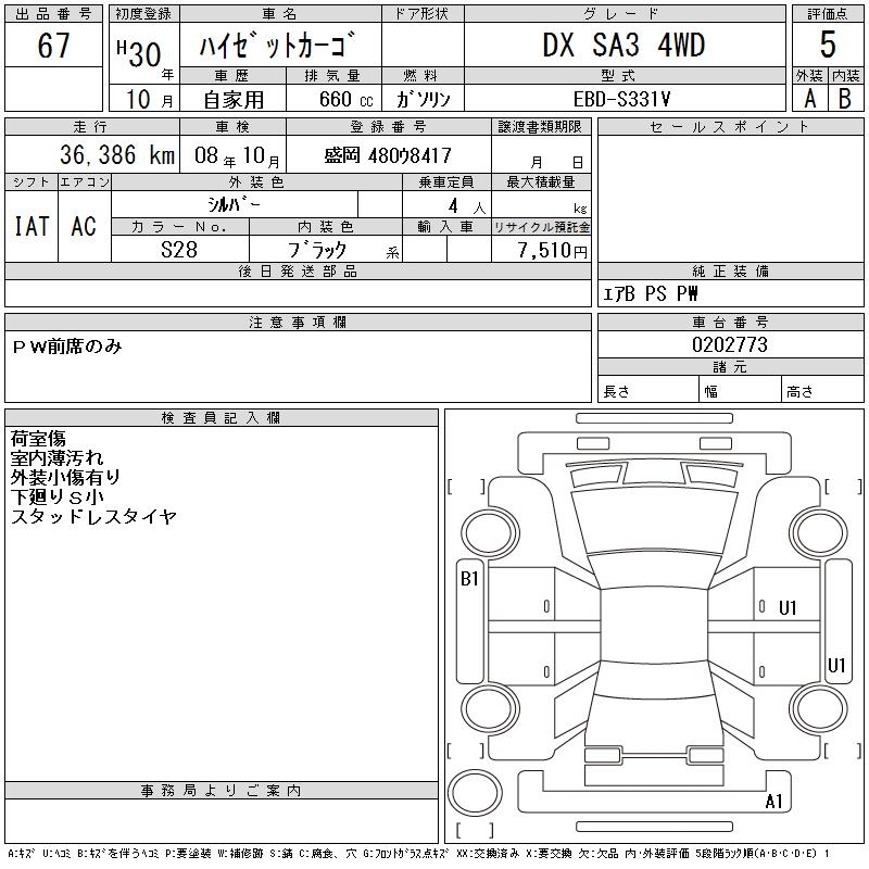 DAIHATSU HIJET CARGO DX SA3 4WD - лот 67