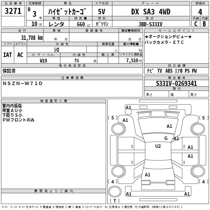 DAIHATSU HIJET CARGO DX SA3 4WD - лот 3271