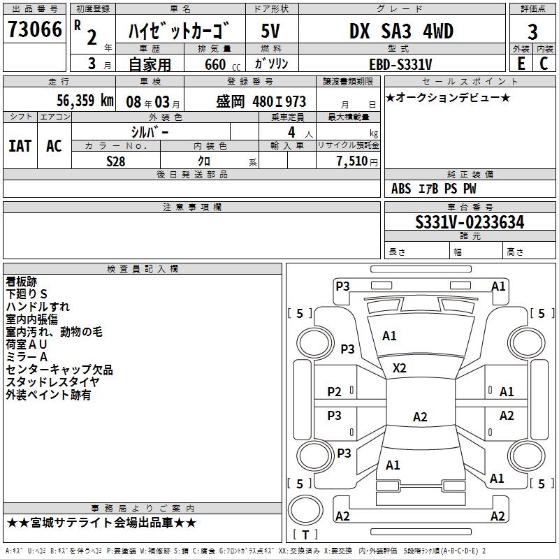 DAIHATSU HIJET CARGO DX SA3 4WD - лот 73066