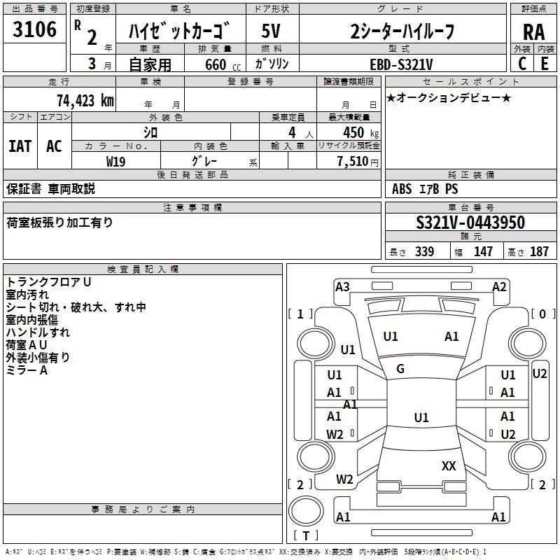 DAIHATSU HIJET CARGO 2 -SEATER HIGH ROOF - лот 3106