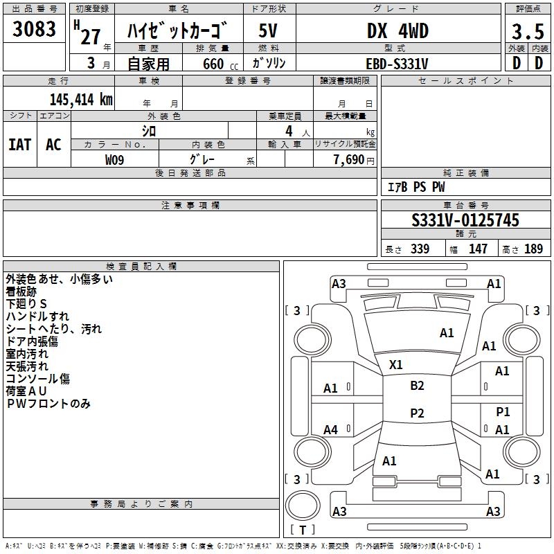 DAIHATSU HIJET CARGO DX 4WD - лот 3083