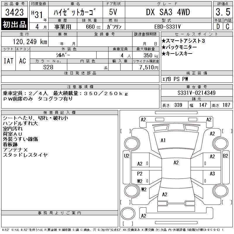DAIHATSU HIJET CARGO DX SA3 4WD - лот 3423