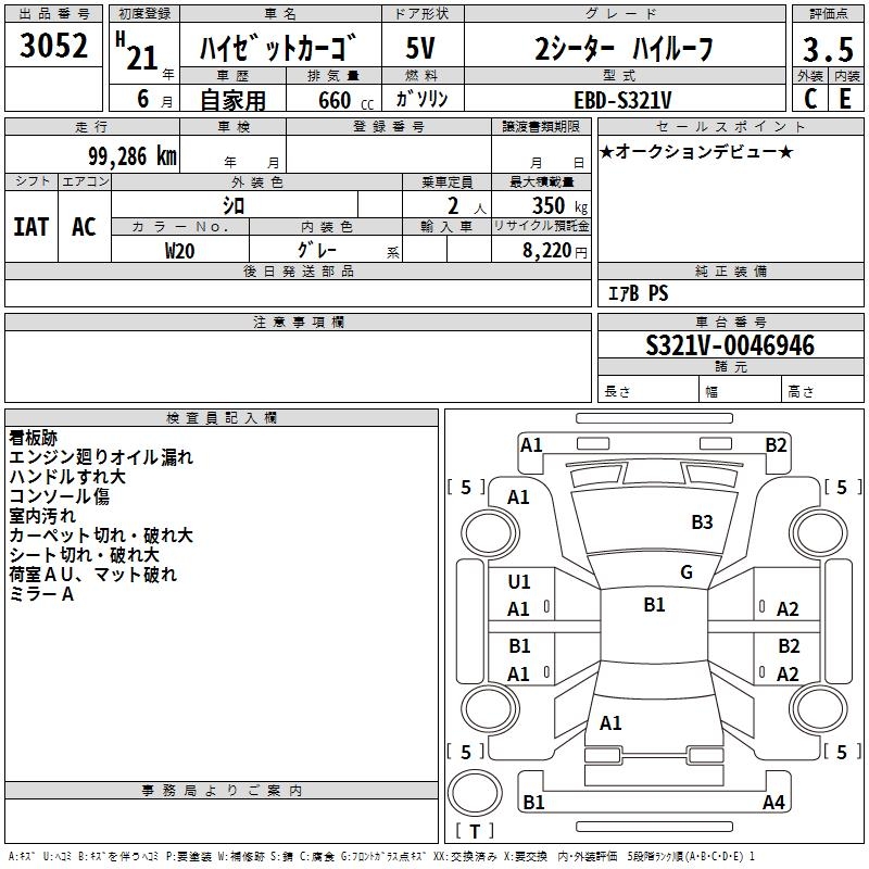 DAIHATSU HIJET CARGO 2 -SEATER HIGH ROOF - лот 3052