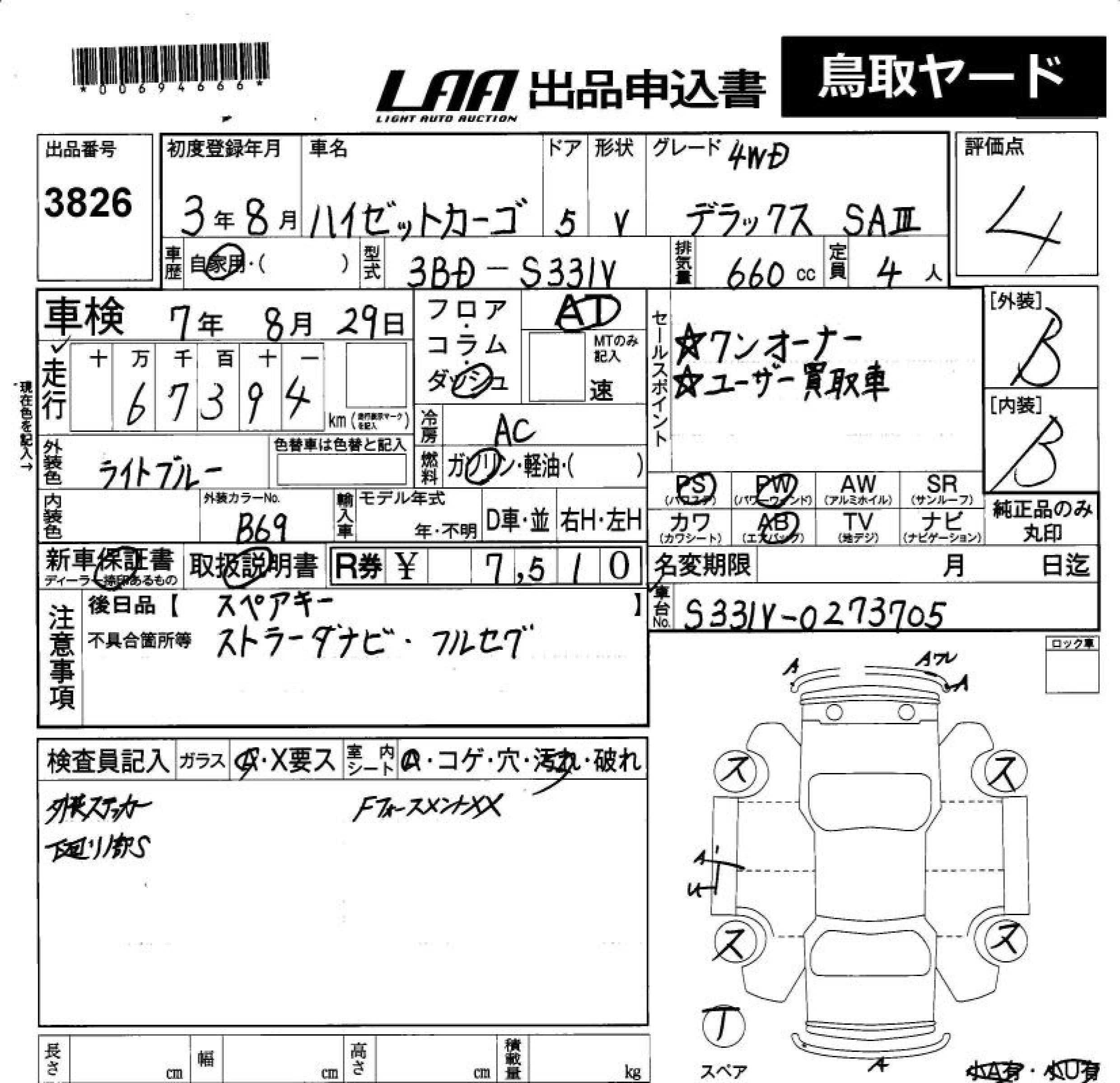 DAIHATSU HIJET CARGO DELUXE SA. 4WD - лот 3826