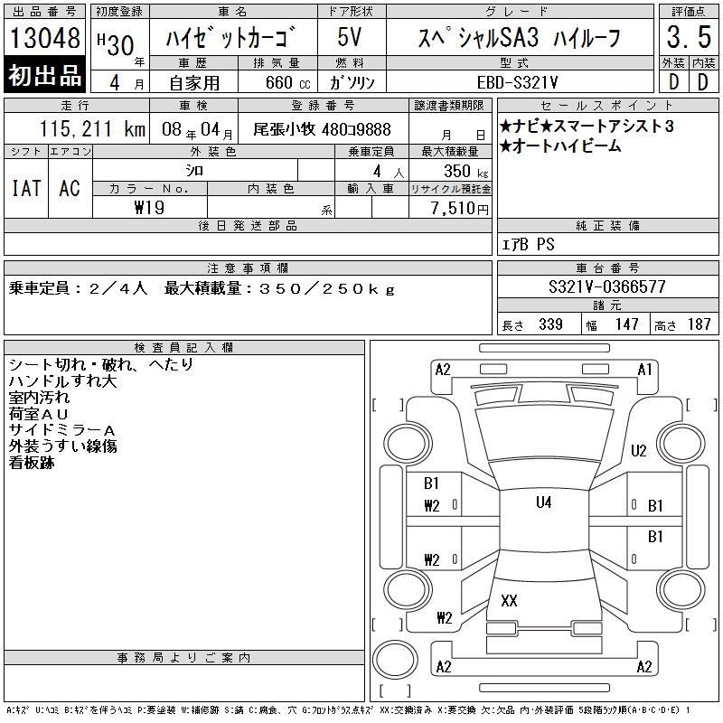 DAIHATSU HIJET CARGO SPECIAL SA3 HIGH ROOF - лот 13048