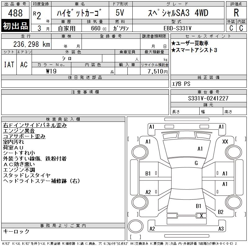 DAIHATSU HIJET CARGO SPECIAL SA3 4WD - лот 488
