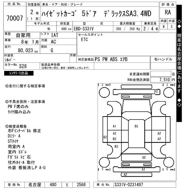 DAIHATSU HIJET CARGO DELUXE SA3.4WD - лот 70007