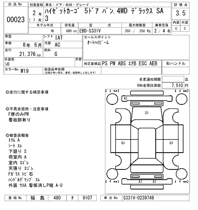 DAIHATSU HIJET CARGO DELUXE SA3 - лот 23