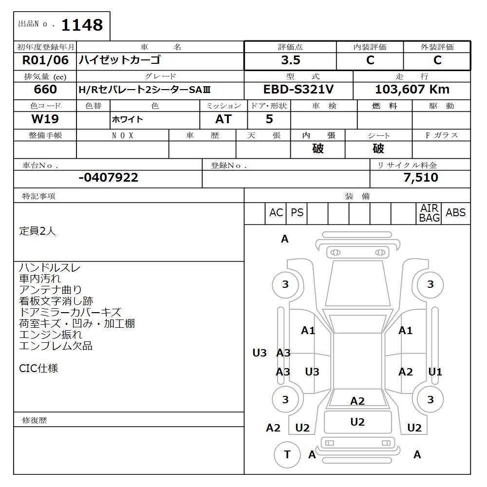 DAIHATSU HIJET CARGO H/R SEPARATE 2 -SEATER SA. - лот 1148