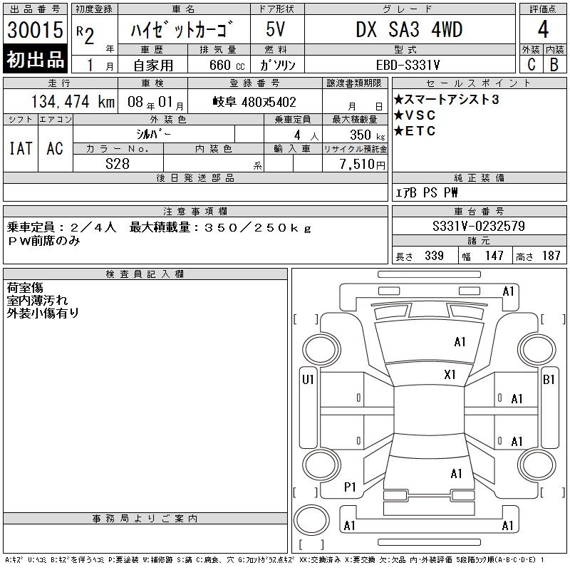 DAIHATSU HIJET CARGO DX SA3 4WD - лот 30015