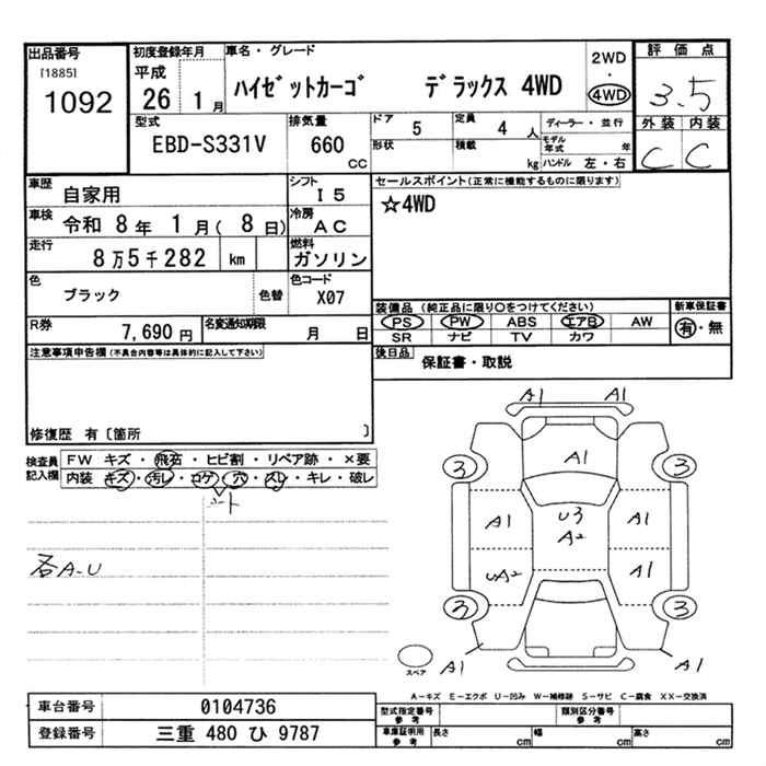DAIHATSU HIJET CARGO 4WD DELUXE - лот 1092