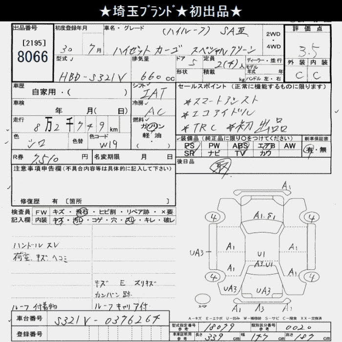 DAIHATSU HIJET CARGO SPECIAL CLEAN SA III HIGH ROOF - лот 8066