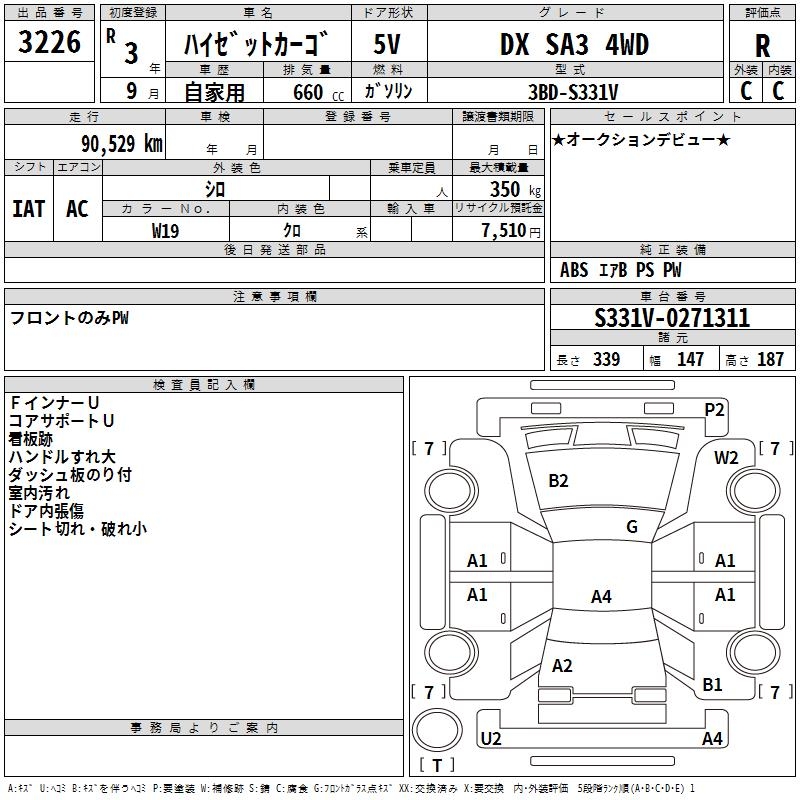 DAIHATSU HIJET CARGO DX SA3 4WD - лот 3226