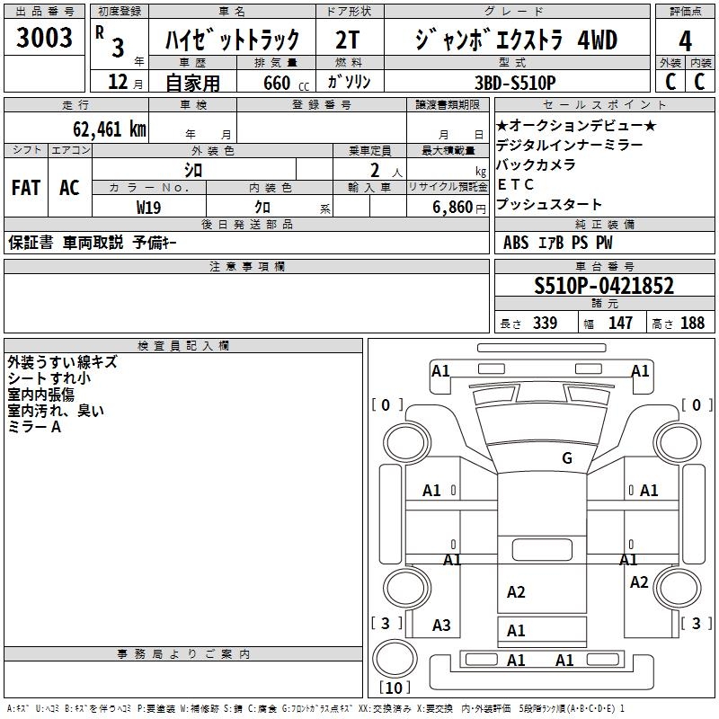 DAIHATSU HIJET TRUCK JUMBO EXTRA 4WD - лот 3003