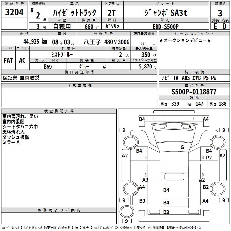 DAIHATSU HIJET TRUCK JUMBO SA3T - лот 3204