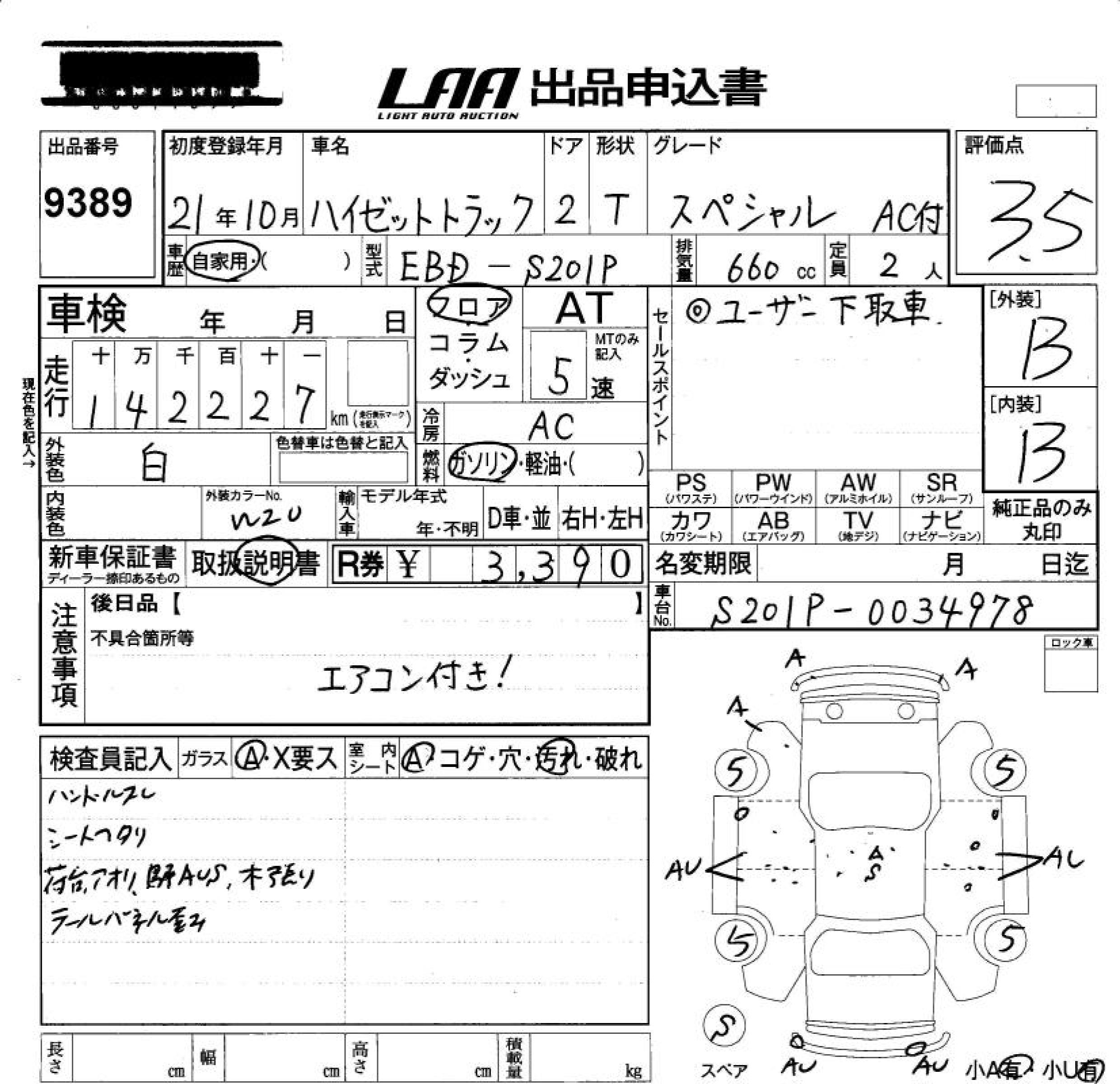 DAIHATSU HIJET TRUCK SPECIAL AC ATTACHING - лот 9389