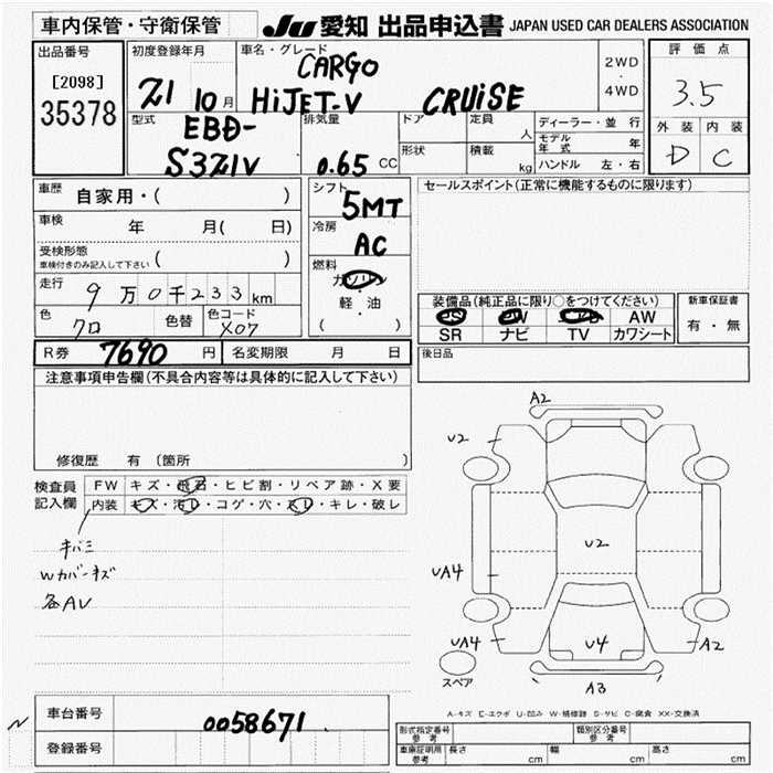 DAIHATSU HIJET VAN CARGO ) CRUISE - лот 35378