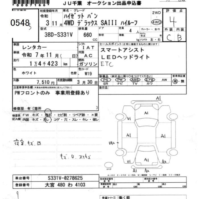 DAIHATSU HIJET VAN 4WD DELUXE SAIII HIGH ROOF - лот 548