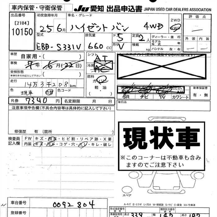 DAIHATSU HIJET VAN 4WD 2 PERSON - лот 10150
