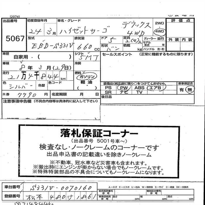 DAIHATSU HIJET VAN CARGO 4WD DELUXE - лот 5067