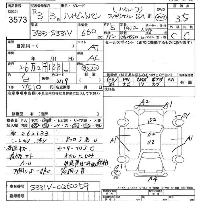 DAIHATSU HIJET VAN 4WD SPECIAL SAIII - лот 3573