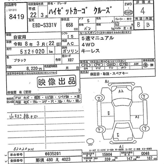 DAIHATSU HIJET VAN 4WD CRUISE HIGH ROOF - лот 8419