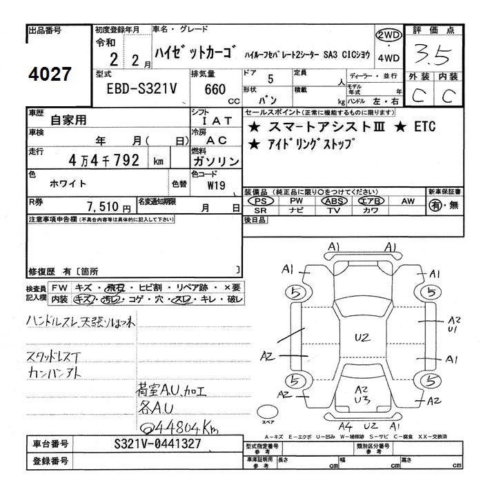 DAIHATSU HIJET VAN SEPARATE 2 -SEATER SA III HIGH ROOF CIC USE - лот 4027