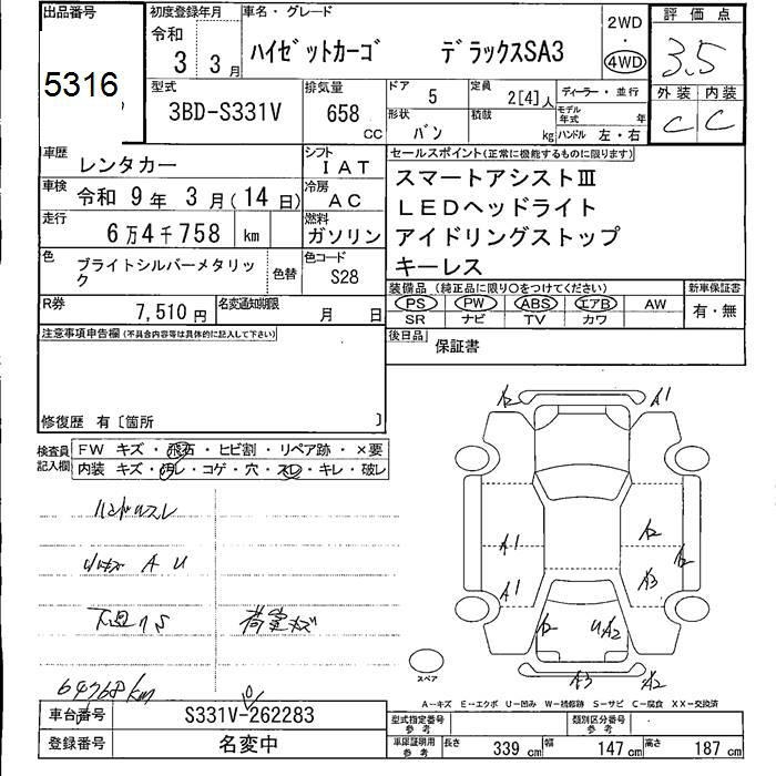 DAIHATSU HIJET VAN 4WD DELUXE SAIII - лот 5316