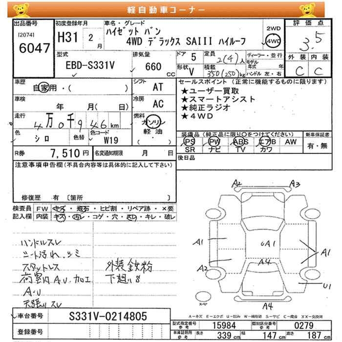 DAIHATSU HIJET VAN 4WD DELUXE SAIII HIGH ROOF - лот 6047