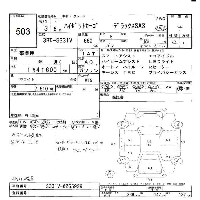DAIHATSU HIJET VAN 4WD DELUXE SAIII - лот 503