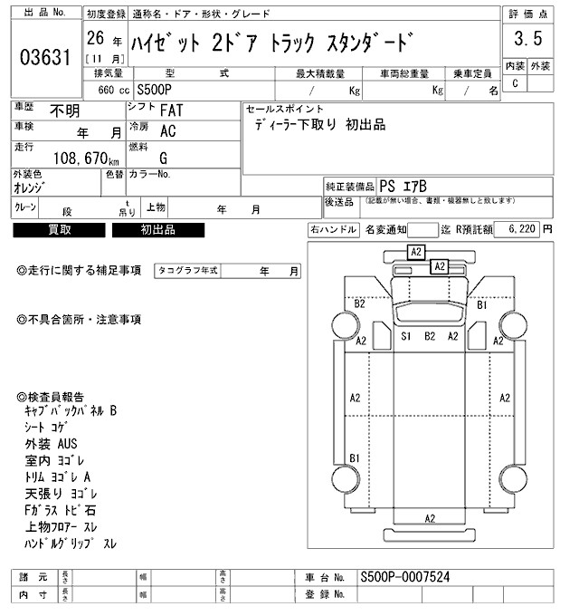 DAIHATSU HIJET STANDARD - лот 3631