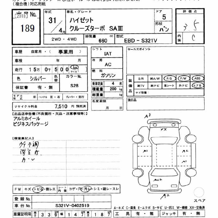 DAIHATSU HIJET CRUISE TURBO SA3 - лот 189