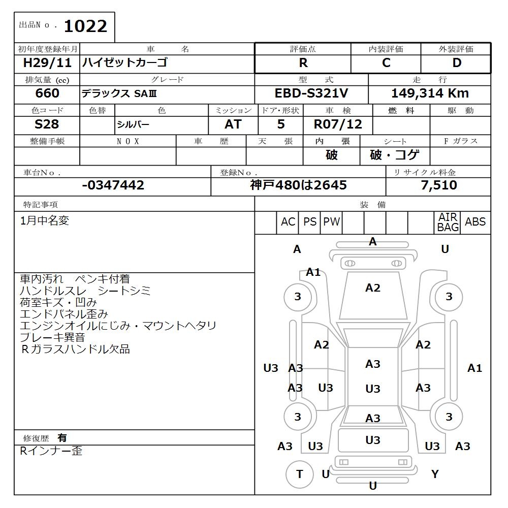 DAIHATSU HIJET CARGO - лот 1022