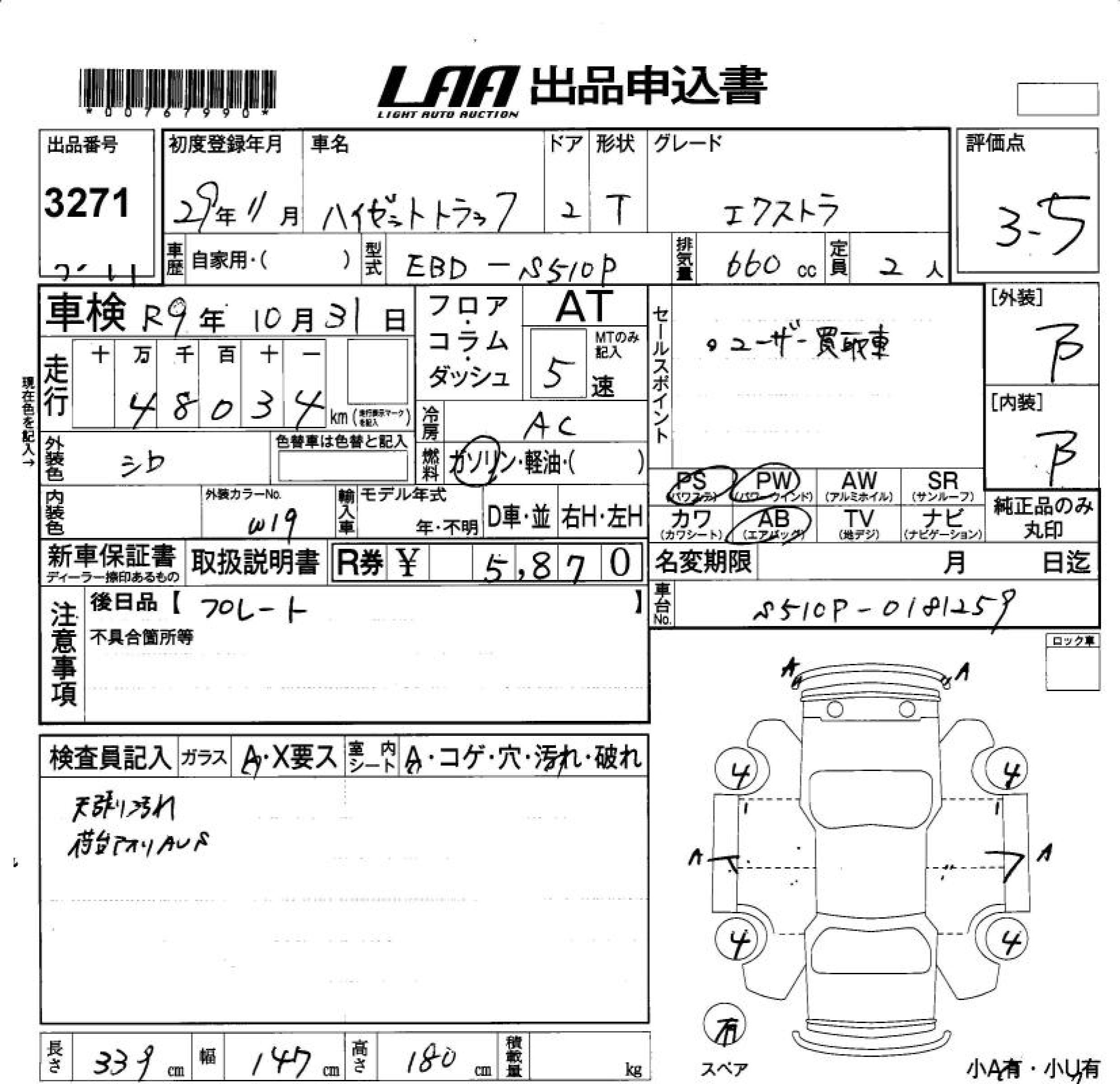 DAIHATSU HIJET TRUCK - лот 3271